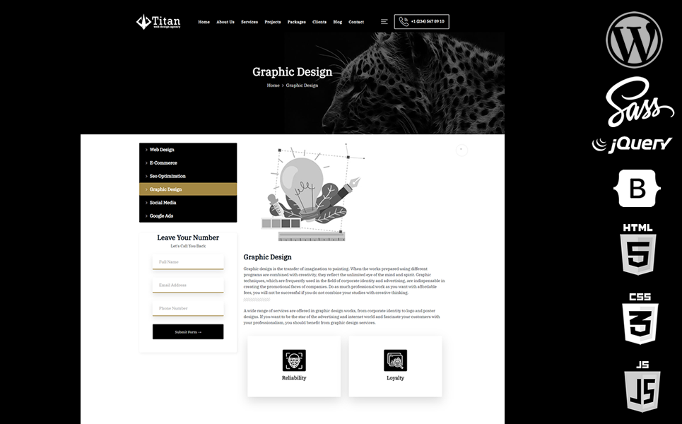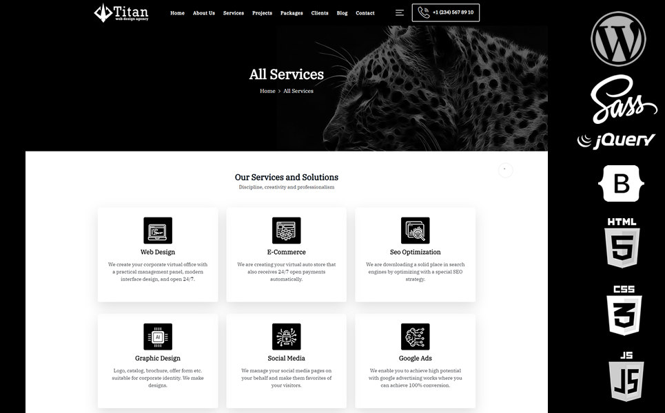 Titan WordPress Theme is a custom WordPress theme developed for Web Design Agency, Web Agencies, Seo Agencies, Web Designer, Web Developer, Graphic Designer, Software Developer, IT Solutions and anyone who provides Web Services.