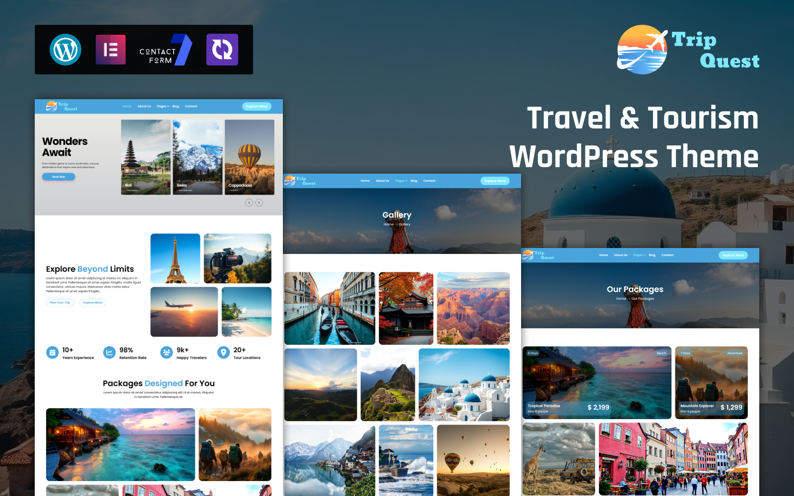 Whether you run a local travel agency, organize international tours, or provide custom vacation packages, TripQuest gives you the flexibility and tools to promote your services with ease. From highlighting top destinations to presenting detailed itineraries, TripQuest ensures your website inspires travelers to book their next journey with confidence.