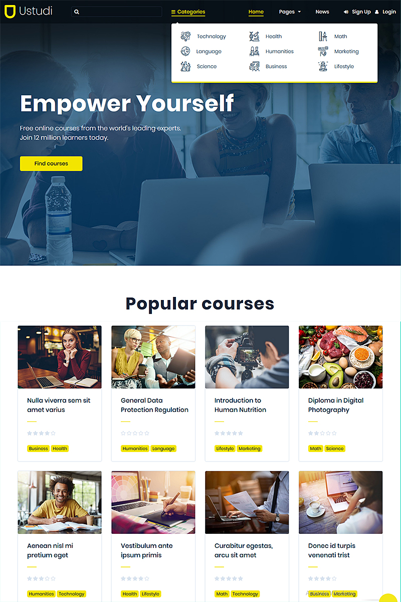 Ustudi - is a professional WordPress theme for online education, courses, and University/College websites. The theme is responsive and appears beautiful on phones, tablets, and high-resolution desktops. The theme's pages provide high performance, semantic code structure, and ultimate responsiveness.