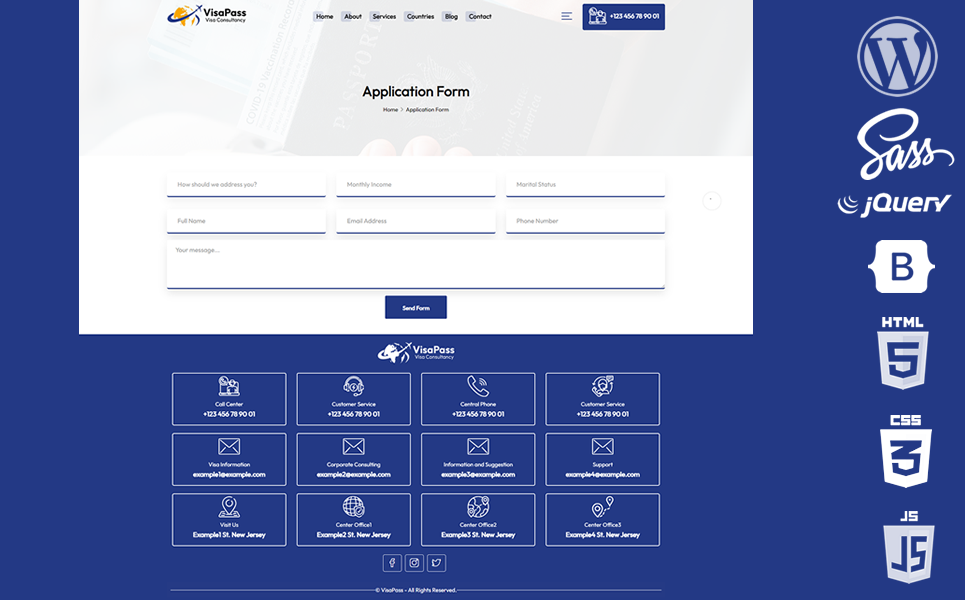 Even the footer of VisaPass is designed with creativity in mind. With icon-enhanced elements, your footer remains visually appealing and functional.