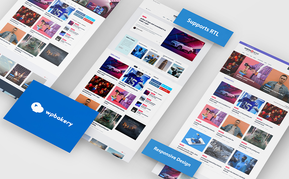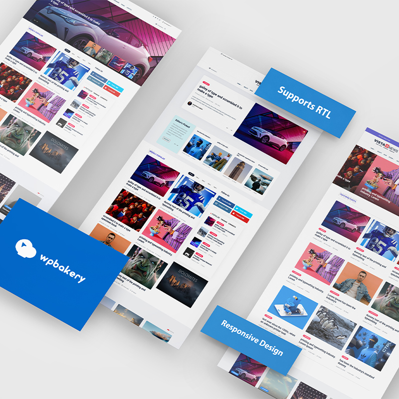- Drag-and-Drop Page Building: Vista News is fully compatible with WPBakery, allowing you to create custom pages with ease using simple drag-and-drop functionality.
