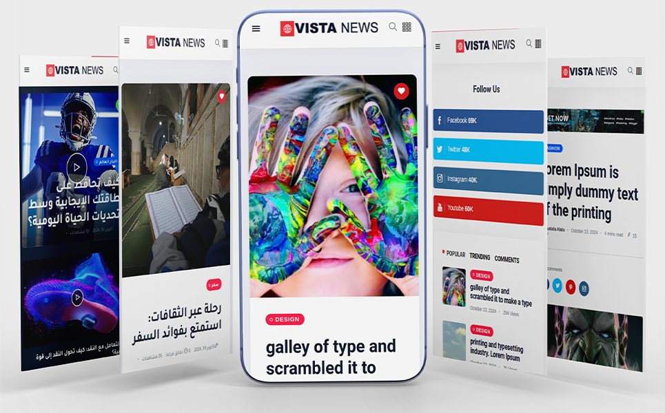 Support Create websites and publish content in RTL (Right to left) languages. The Vista News theme is RTL ready for you to easily generate a seamless user experience for international audiences. Vista News brings the essential improvement you’ve waited for.