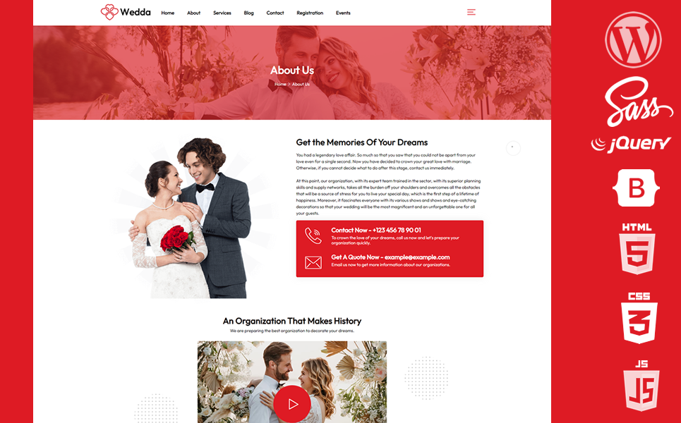 Wedda WordPress Theme is an impressive and fascinating wordpress theme designed for Wedding and Organization companies.
