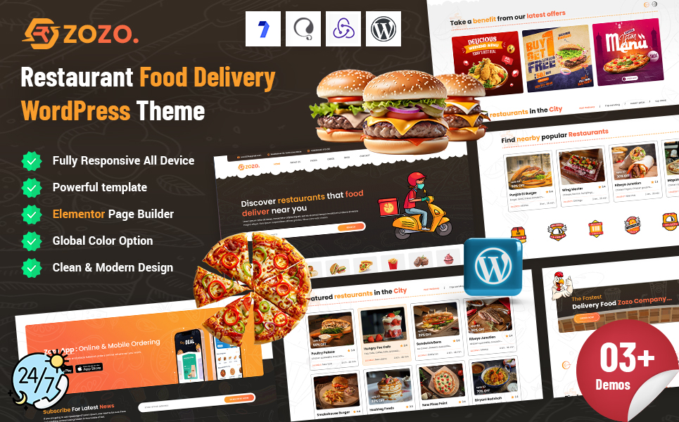 Zozo is a premium WordPress theme designed specifically for restaurant food delivery services. It features a modern and responsive layout that ensures an optimal viewing experience across various devices. With its user-friendly interface, Zozo allows restaurant owners to showcase their menus, special offers, and delivery options effectively. The theme comes equipped with customizable elements, enabling users to tailor the design to match their brand identity. It includes essential features such as online ordering, payment integration, and customer reviews, enhancing the overall user experience. Additionally, Zozo supports various plugins to extend functionality, making it a versatile choice for any food delivery business. Zozo is optimized for search engines, ensuring better visibility and reach for your restaurant. Its fast loading times and secure coding contribute to a reliable and efficient platform for both restaurant owners and customers. With Zozo, elevate your food delivery service and attract more patrons with a professional online presence.